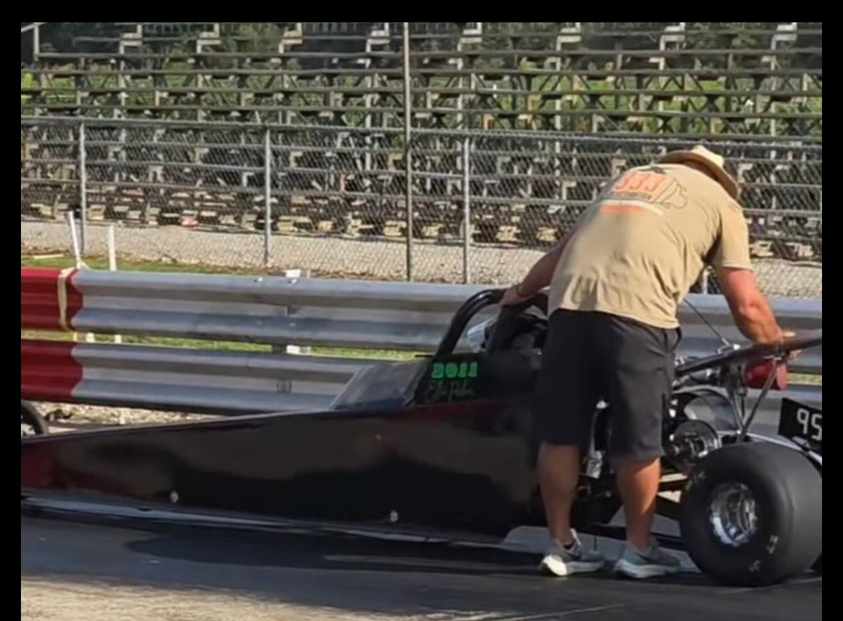 My dad raced when I was growing up, and the dragstrip was basically home. Every Friday through Sunday, that’s where we were. I wasn’t the kid running wild through the pits—I was the one helping in the burnout box, spraying the radiator down between rounds to keep things cool, washing the car, and getting everything ready on Friday afternoons after school. I helped change engines and transmissions, even if most of the time that meant handing over tools or holding the light—the dreaded but necessary job.